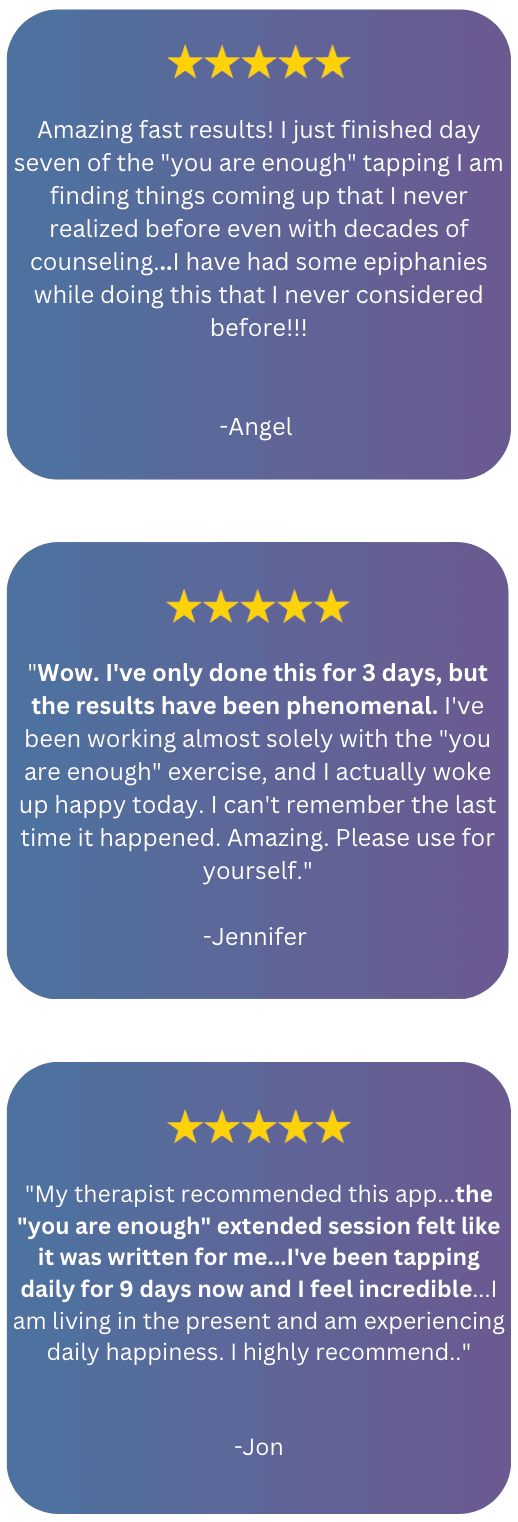 Seeing the response from our community to our "You Are Enough" Tapping Meditation has been nothing short of astounding. I've witnessed first-hand, time and time again, the incredible transformations that can happen when people realize and embrace their worthiness.
