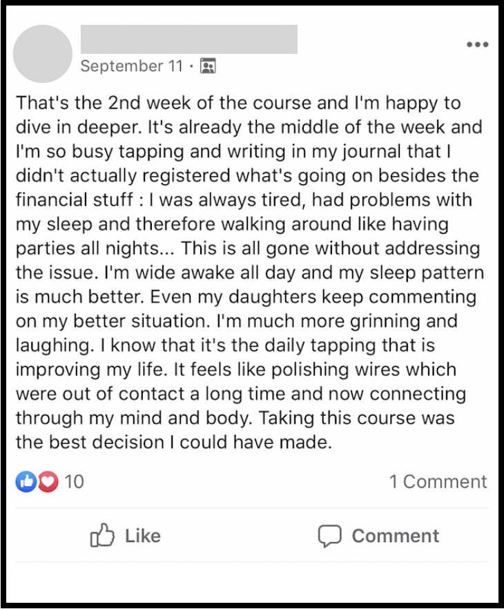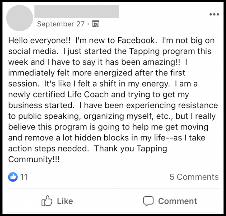 "Nick, Thank you for this awesome opportunity to become a part of your tapping community.