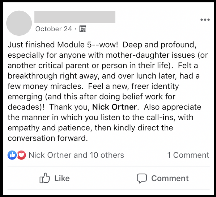 "Thank you so much Nick for working with me on the blocks that I had to selling more books during the Tapping in Action calls! Amazing things have happened for me since the course started!"