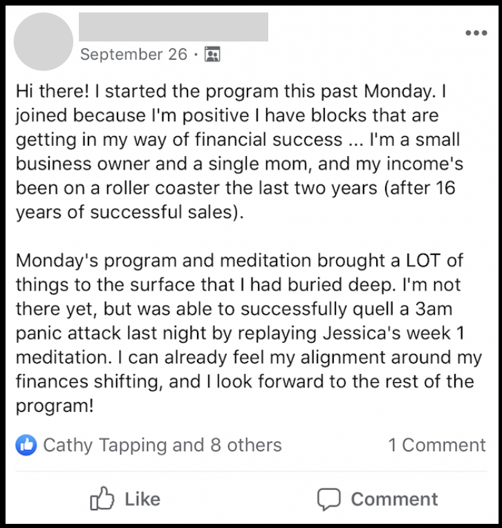 We both sat in on most if not all of the 7 weeks of the wealth creation tapping and we have already changed from being in about 50 to 70 thousand dollars of debt to not being in debt at all. We are now even growing a savings account which is already at $13,000.00!"