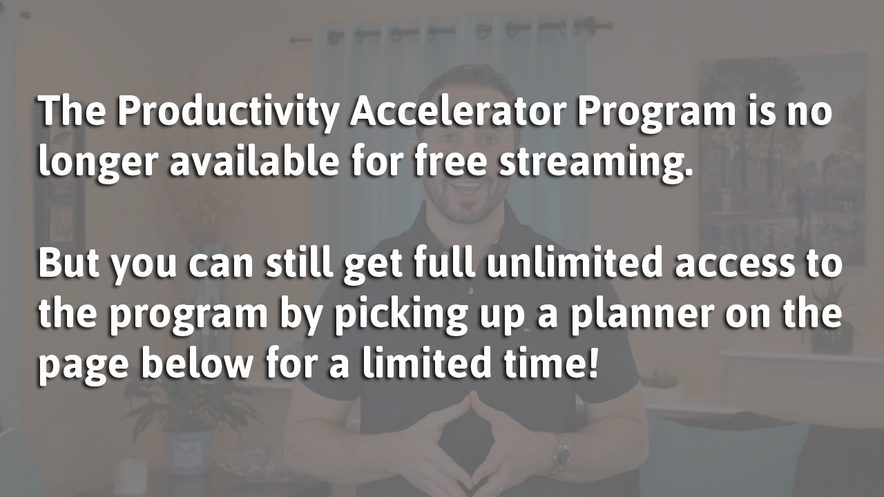 This Productivity Accelerator Program is only being unlocked for a limited time, until December 23rd, 2024. Make sure to watch the full program before it's taken down!