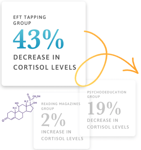 A landmark study published in 2012 in the prestigious Journal of Nervous and Mental Disease, found that EFT Tapping lowered cortisol significantly more than traditional talk therapy or resting.